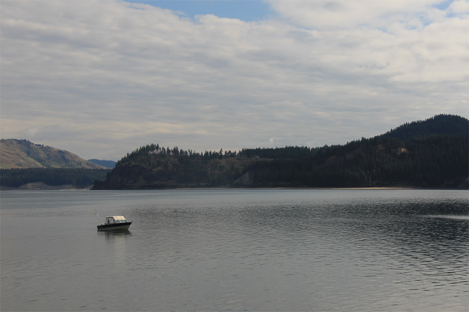 The Hudson’s Bay Company’s Fort Colvile on the Columbia River near Kettle Falls in 1860 (Boundary Survey, Library of Congress-3g11420u) and Roosevelt Lake in 2013 (CW 2013-05-27-183).