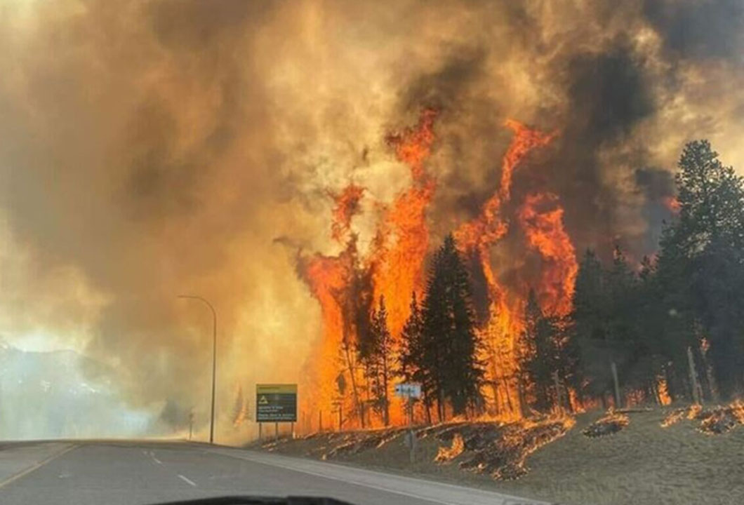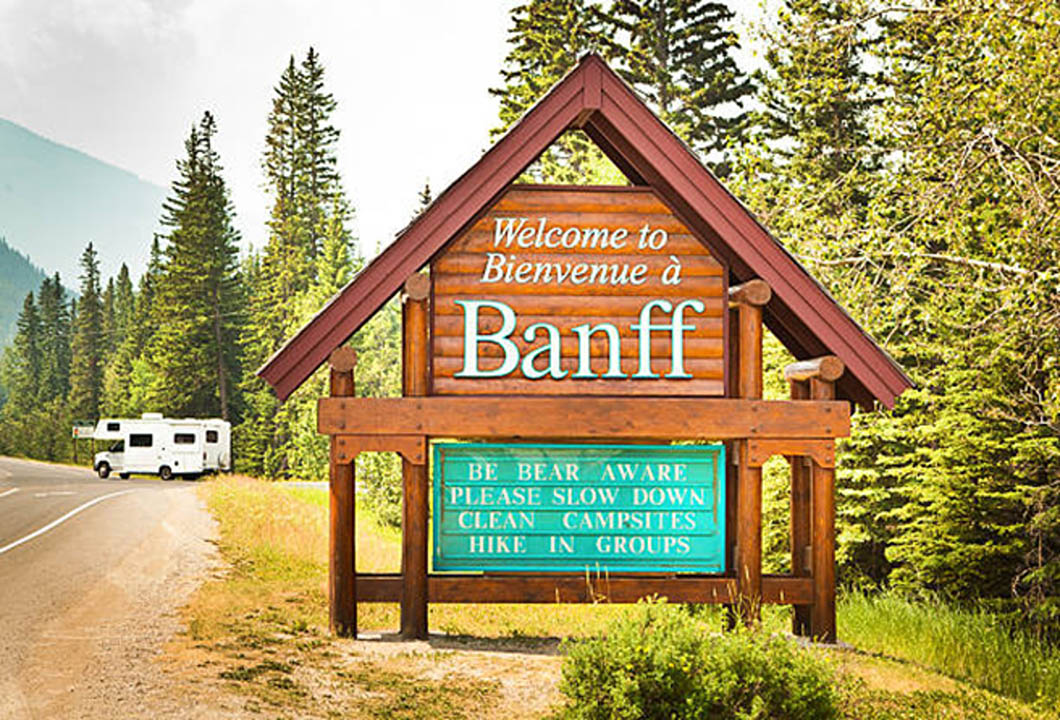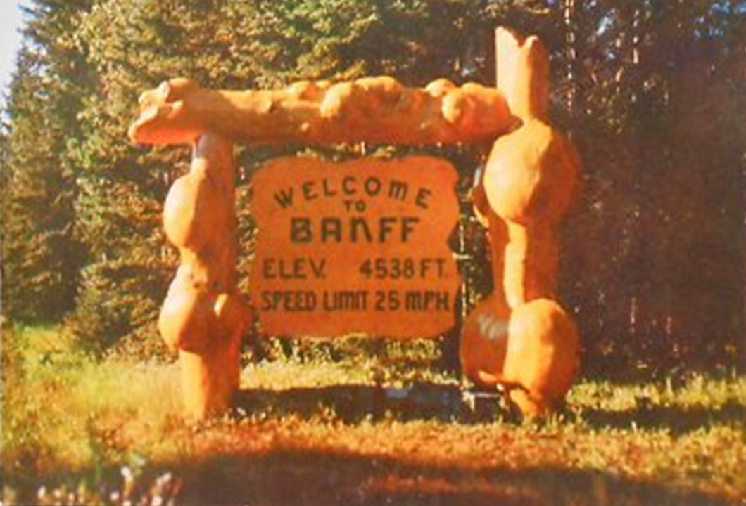 The 2024 version of the iconic “Welcome to Banff” sign encounters the  Compound Meadows prescribed fire.