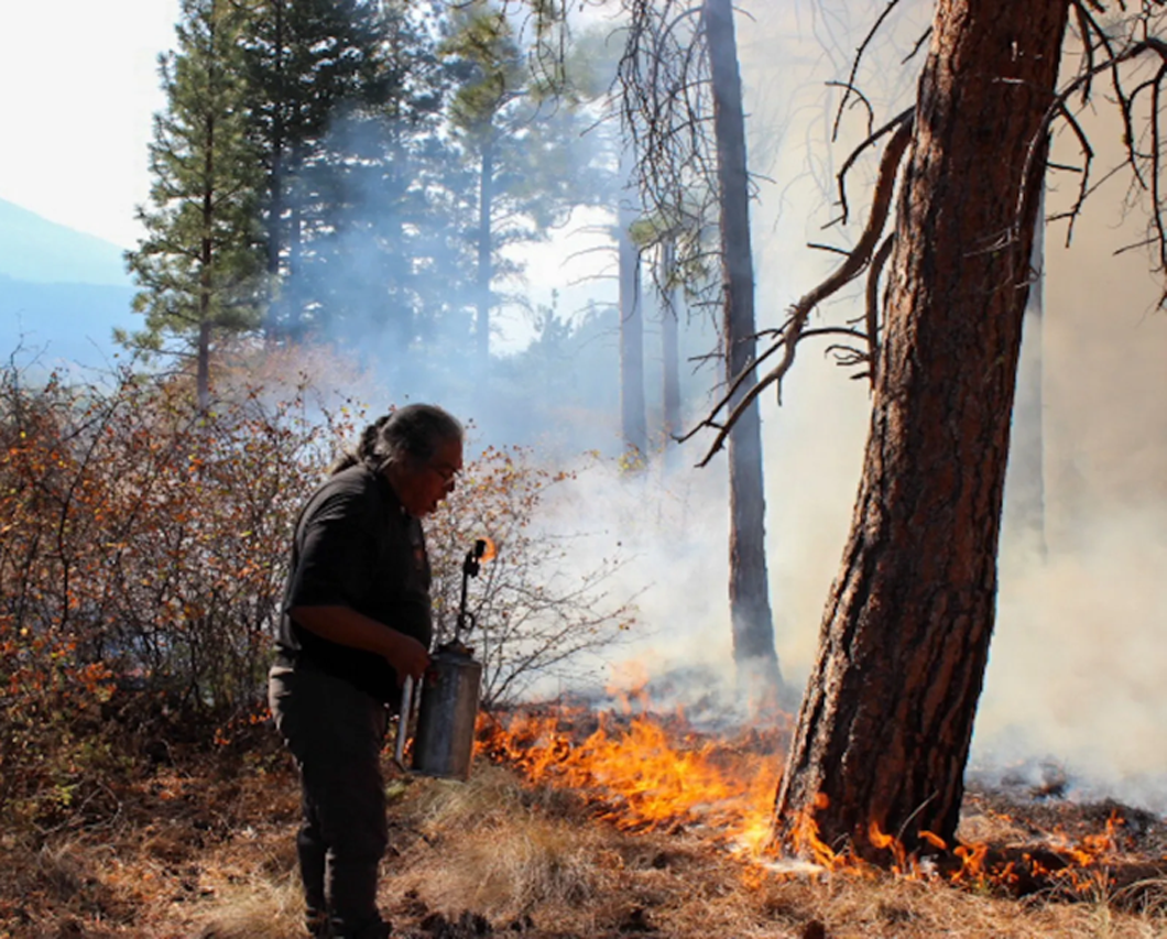 Joe Gilchrist, a member of the Skeetchestn Indian Band of the Secwepemc Nation conducting a cultural prescribed burn (image provided by Penelope Bridge to USA Today).