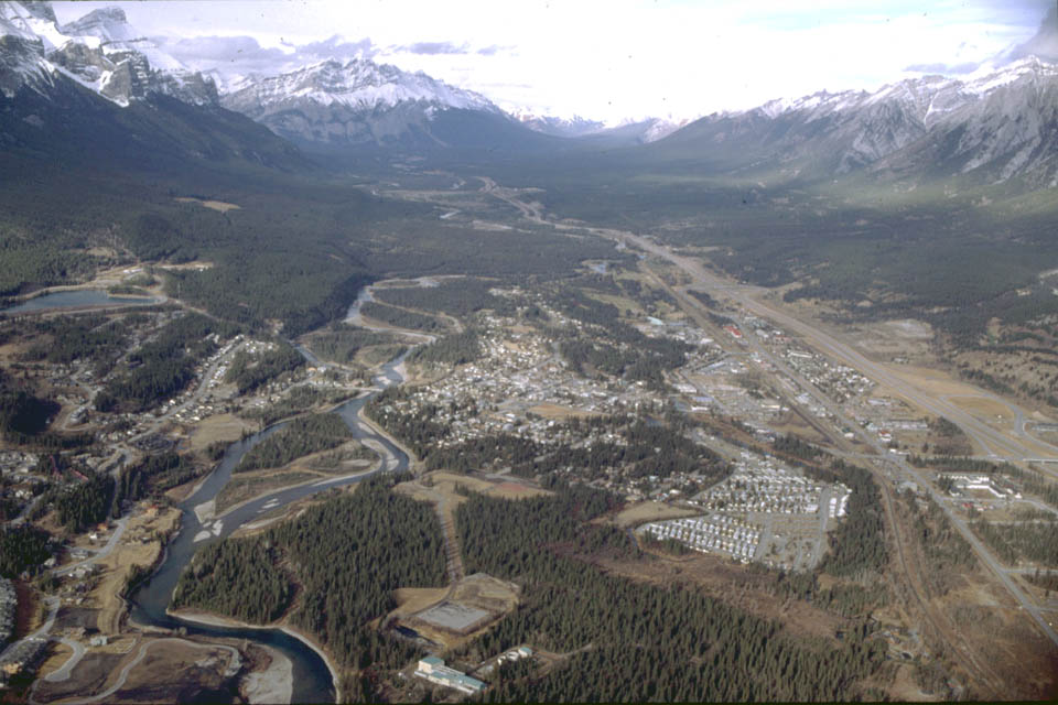 Canmore Corridor, Bow Valley in 1922 (National Air Photo Library) and in 1999 (CW photo). One explanation for the high fire frequency in the valley bottom of eastern slope rivers is that Indigenous peoples routinely burned these areas to attract them off the plains into valleys where they could be contained and hunted, particularly in winter. People may have even purposely herded bison off the plains into these burned corridors. In the Bow Valley, once bison were above Lac des Arcs, they were effectively “stored on the hoof” for future use.