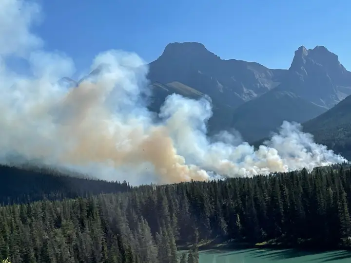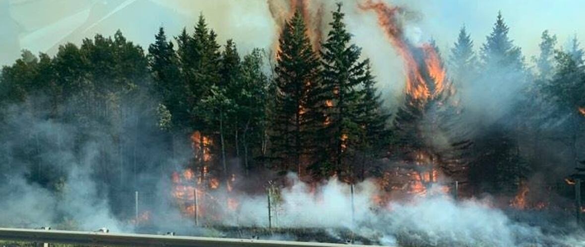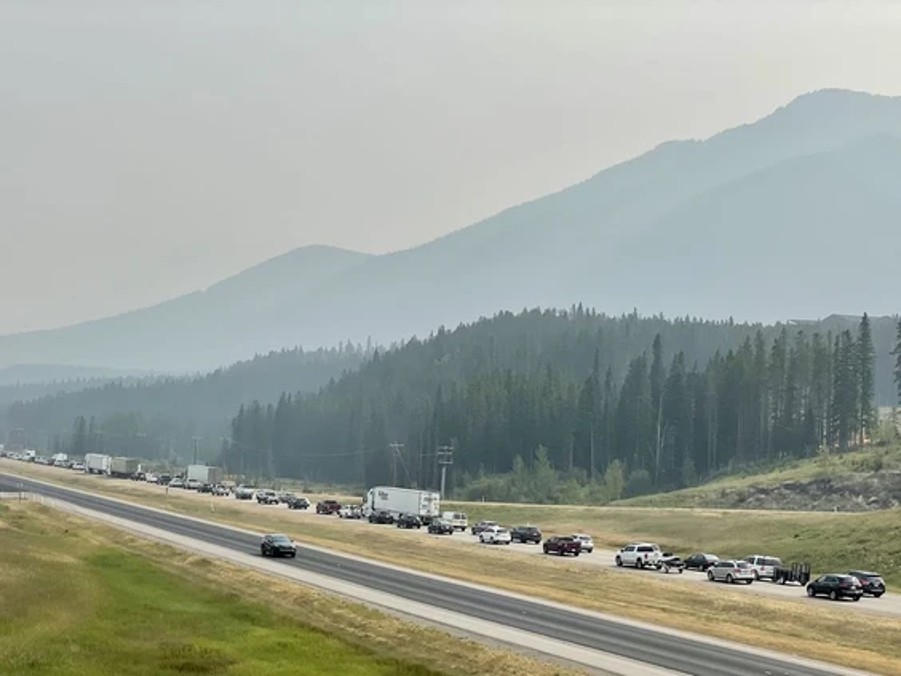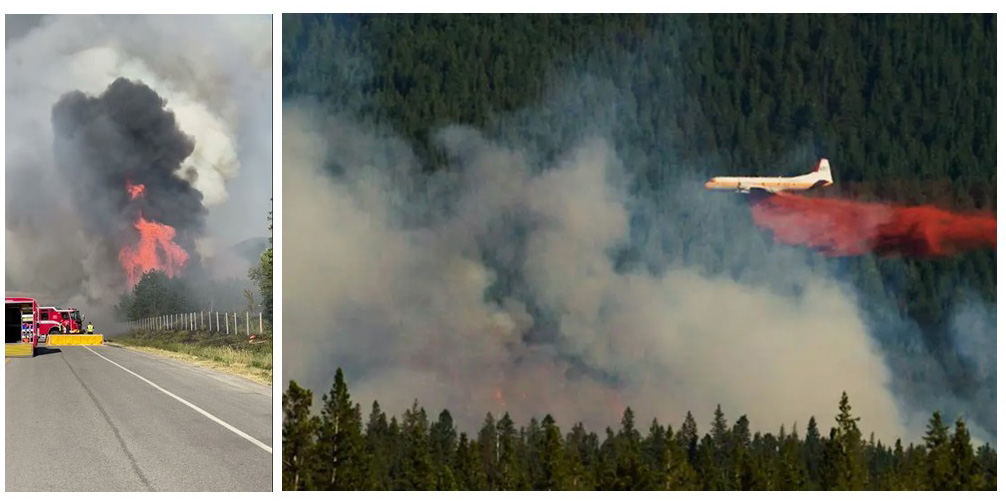 Wildfire in August 2021 along Trans Canada Highway at Deadmans Flats.